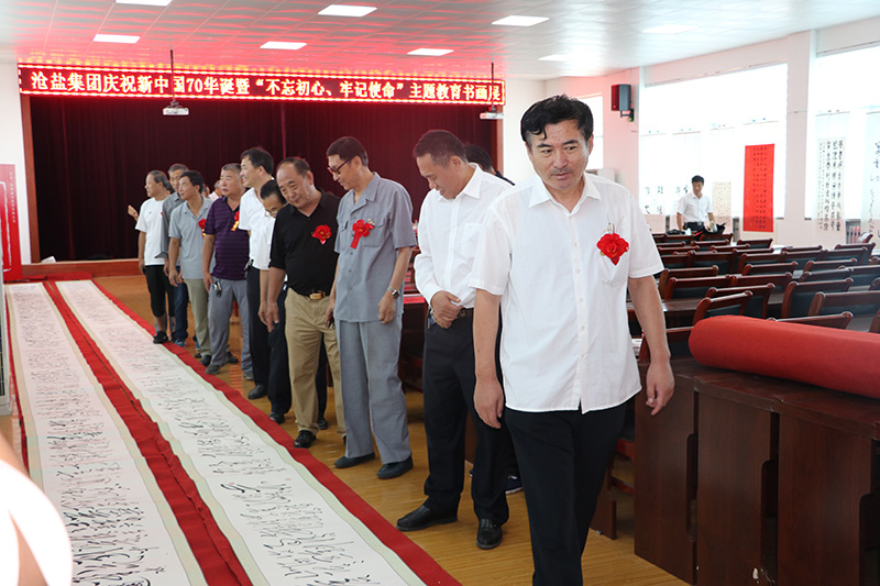 9月29日,公司黨委舉辦了慶祝新中國70華誕暨“不忘初心、牢記使命”主題教育書畫展。來自河北省各地的毛體書法愛好者齊聚一堂,揮毫潑墨寫下對新中國的祝福,還共同在百米長卷上留下墨寶,合力推動滄鹽企業文化發展。