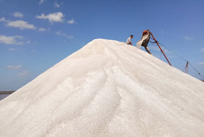 自入秋以來,長蘆鹽業公司努力克服8月中旬超強臺風、特大暴雨對生產的毀滅性影響,廣泛發動全體黨員、干部職工以管理升級為動力,抓住天時加班加點,激情工作。在生產方面,晝夜加班維修鹽田促鹵水排隊,快制飽和鹵促換池秋曬,因地制宜進行部分退池保大面積正常結晶長鹽,較快恢復了正常生產。進入9月中旬,長蘆鹽業公司經過深入考察市場,結合自身生產實際,決定提前進行秋扒工作。經過全面的安全三級教育培訓、質量學習培訓、物料儲備等一系列精心準備,9月16日秋扒全面展開,這也標志著一年中的秋曬和秋扒工作進入到最關鍵階段。
