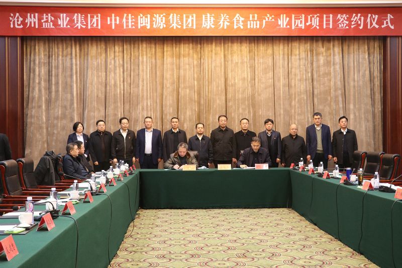 1月12日下午,公司與中佳閩源集團在金都花園酒店舉行康養食品產業園項目簽約儀式。滄州市委常委,渤海新區黨工委書記、黃驊市委書記、市人大常委會主任董鳴鏑出席簽約儀式并講話。