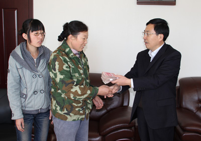 10月25日,當董事長程同海將寄托著1640多名干部職工哀思和祝福的捐款交到王翠榮手中時,王翠榮感動得熱淚盈眶,連聲說:謝謝,謝謝大家的關心。