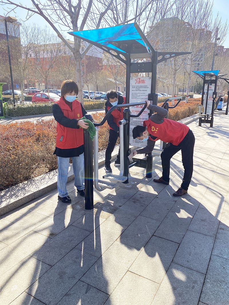 活動中,團員青年發揚不怕苦、不怕累的光榮傳統,對廣場的健身器械全面擦拭、對花壇、綠化帶、人行道的垃圾、煙頭全面清理,不放過一個死角。
