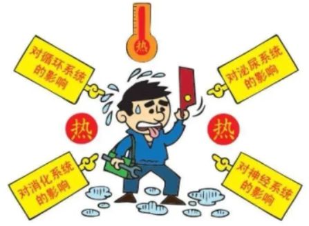 在高溫環境下作業,人體最容易因熱量積累或體溫調節功能紊亂而發生職業性中暑。職業性中暑分為先兆中暑、輕度中暑以及重度中暑。中暑是高溫作業環境下發生的急性疾病,是機體散熱機能發生功能障礙的結果,對人體有較大的危害: