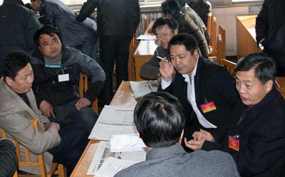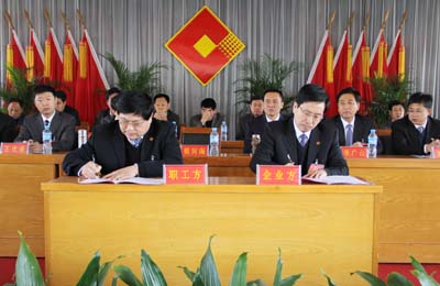 董事長程同海代表企業與職工方代表李金營簽定工資協議