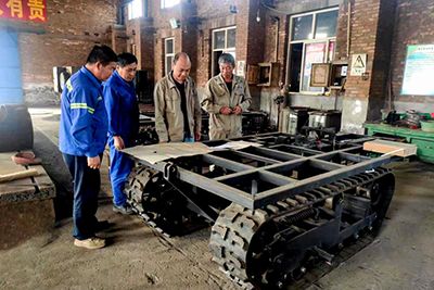 自SYJ-I型履帶式收鹽多用機于今年3月份在長蘆鹽業(yè)公司六工區(qū)進行扒鹽試驗取得初步成功后,本著提高設備技術含量、服務一線原鹽生產的宗旨,工貿公司先后針對性地對其進行了技術再升級。技術研發(fā)部門多次組織技術人員深入到長蘆鹽業(yè)公司一線扒鹽作業(yè)現場進行實地調研,與操作人員進行咨詢溝通,了解新設備在使用過程中的性能,掌握具體技術數據,并根據一線職工的反饋,針對收鹽機使用過程中存在的問題,對標技術數據確定了更適合生產實際的改進思路。