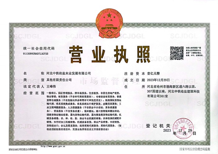 2023年12月29日,河北中鐵滄鹽木業發展有限公司注冊成立,標志著滄鹽集團引入央企三級子公司正式落地,華北進口木材產業園建設正式拉開序幕。