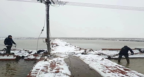 根據(jù)天氣預(yù)報,長蘆公司提前做好保鹵、加深結(jié)晶池、防滑防凍、留崗值班、交通安全等防災(zāi)減災(zāi)安排。全體生產(chǎn)管理人員、制鹵人員堅(jiān)守崗位,冒著暴風(fēng)雪寒潮開啟循環(huán)串壕、融化積雪,徹夜進(jìn)行結(jié)晶池和調(diào)節(jié)池片淡,盡最大限度減少鹽鹵損失。