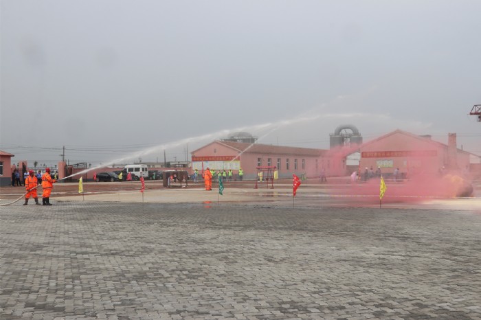 此次演練模擬了機(jī)械傷害、中暑、觸電、火災(zāi)、溴素燙傷、氯氣泄漏六個(gè)事故場(chǎng)景。演練開(kāi)始前,進(jìn)行了空呼機(jī)穿戴、全封閉防化服穿戴、空呼機(jī)穿戴30米跑、消防等技能比武活動(dòng)。
