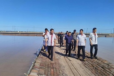 8月26日特大暴雨過后,長蘆公司在做好淡水出灘的同時及時回收塑膜,對結(jié)晶池進行逐灘逐池摸排,全體制鹵人員晝夜進行二次片淡保鹽并展開鹵水排隊。為檢驗生產(chǎn)措施成效,長蘆公司對25隊、26隊的災(zāi)后生產(chǎn)恢復、結(jié)晶管理和鹵水排步等各項工作進行了觀摩學習和經(jīng)驗交流。