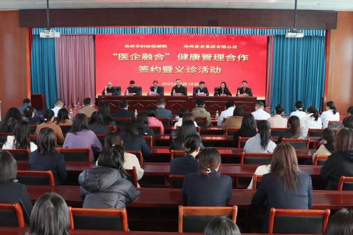 3月28日上午,滄鹽集團與滄州市婦幼保健院“醫企融合 共筑健康新未來”合作簽約暨義診活動在滄鹽集團二樓小禮堂隆重舉行。滄鹽集團黨委副書記、總經理張立莊,黨委委員、紀委書記狄彬,滄州市婦幼保健院黨委書記徐聞鉑,黨委委員、工會主席崔國光,渤海新區黃驊市衛健醫保局副局長馮玉慶出席活動。活動由滄鹽集團黨委委員、工會主席崔國芳主持。