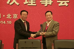 中鹽協會理事長茆慶國為董志華同志頒發中國鹽業卓越成就紀念品
