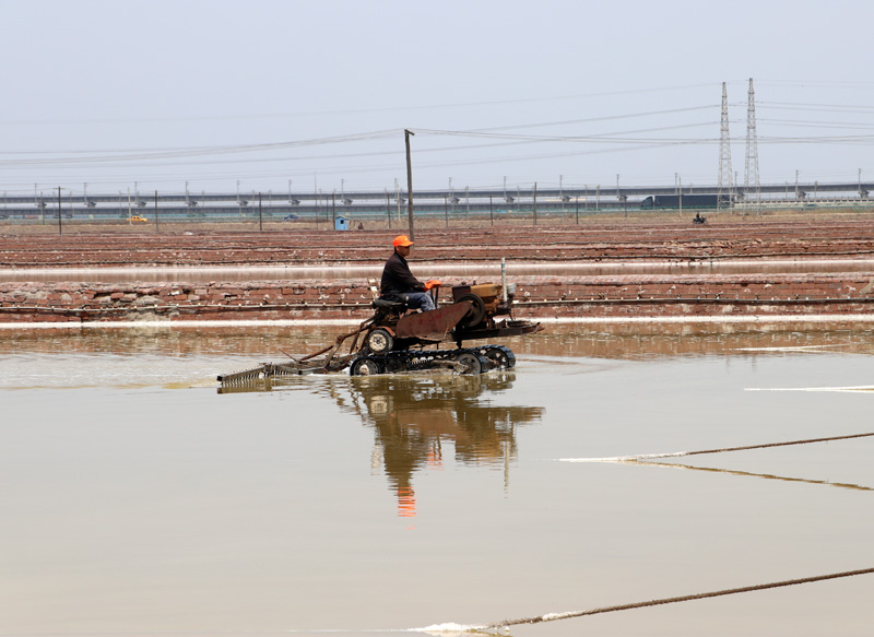 當(dāng)秋扒即將過半,10月7日-10日,公司遭受了風(fēng)暴潮襲擊,最大降雨量達到86.6mm。為了確保鹽田不受損失,長蘆鹽業(yè)公司領(lǐng)導(dǎo)未雨綢繆,提前停止了扒鹽,并提前保好鹵,塑苫全部拉放到位,盡最大努力降低鹽鹵損失。由于安排細致周密,采取措施果斷有效,同時各單元職工24小時全員在崗,不定時進行巡查,確保了這場災(zāi)害性天氣中各灘田沒有受到較大損失,也為及時恢復(fù)秋扒生產(chǎn)奠定了基礎(chǔ)。