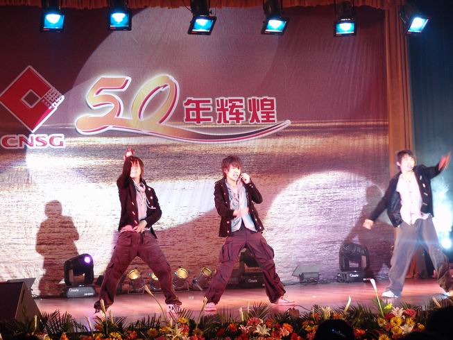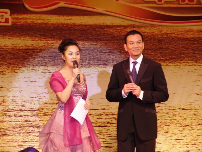 中鹽總公司副總經(jīng)理萬建軍(右)即興演唱